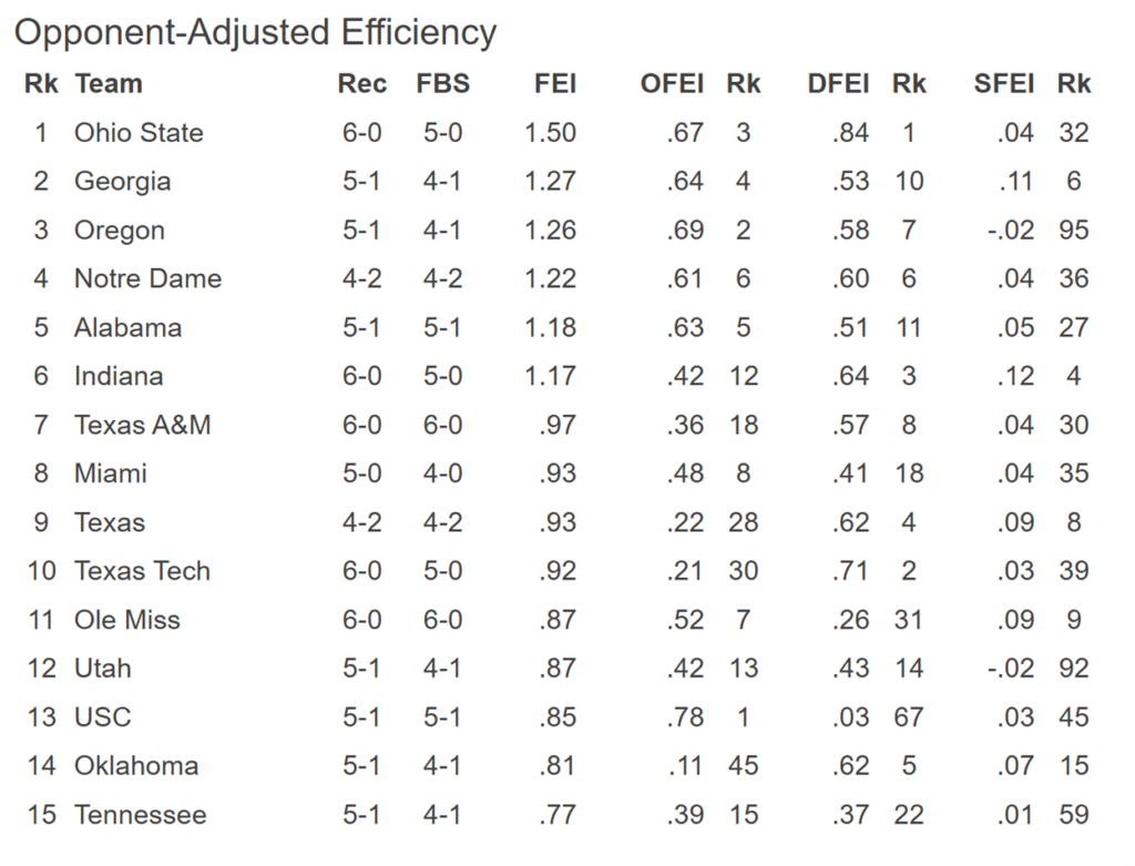 SP+ is “a tempo- and opponent-adjusted measure of college football efficiency that I originally created at Football Outsiders in 2008. SP+ is intended to be predictive and forward-facing.”