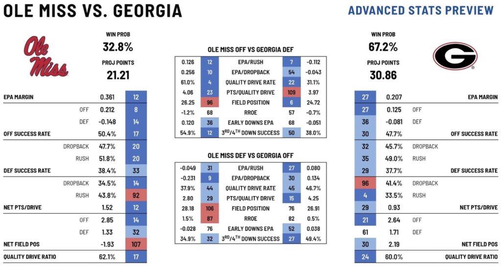 Game 2: No. 20 Ole Miss beat Kentucky in Lexington 30-23. Calzada was 15/30 for 179 yards; QBR of 27.2. Cutter Boley came in and was 1 of 3 for 38 yards, rushed for 14. Ja’Mori Maclin had 2 catches for 56 yards, Hardley Gilmore IV had 2 for 54 yards, and Kendrick Law had 6 for 44. McGowan rushed for 93 yards and 2 touchdowns, Dowdell 14 for 56. 172 yards total rushing.